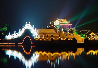 開封是中國(guó)六大古都之一,作為北宋王朝的都城達(dá)167年之久。當(dāng)時(shí)的宋京極為繁盛,宮殿建筑很輝煌。可惜金人侵占開封時(shí),宋皇宮建筑大部分被燒毀了。后來,又經(jīng)過多次兵燹和黃河決堤,宏偉的宮室已蕩然無存。在過去皇宮遺址上只留下了龍亭公園這座的建筑物,而這座龍亭公園卻是清代所建。龍亭公園坐北朝南,高踞在臺(tái)基之上。從地面到大殿有72級(jí)臺(tái)階。臺(tái)階中間是雕有云龍圖案的石階。登上平臺(tái),四周有石欄圍繞。大殿是木結(jié)構(gòu),重檐歇山式建筑,很壯觀。游人登上平臺(tái),入殿觀看陳列的文物后,多在石欄前眺望開封古城景色。龍亭公園前有一條筆直的大道,道旁有兩個(gè)東西對(duì)峙的湖,東為潘湖,西為楊湖。傳說,東湖為宋朝“太師”潘美的府第,他陷害忠良,是個(gè)奸臣,宅院里的湖,水是渾的;西湖為宋朝搞遼名將楊業(yè)的府第,他舍身救國(guó),是個(gè)忠臣,宅院里的湖,水是清的。這個(gè)說法沒有科學(xué)根據(jù),但反映了人們對(duì)忠奸的態(tài)度和感情。現(xiàn)在龍亭公園,潘、楊兩湖,以及龍亭公園后面的假山花園,都辟為龍亭公園公園。從龍亭公園前的大道,過潘、楊兩湖,再往南,仍是一條筆直的大道,兩旁店鋪林立,這條大道歷史上是一條寬闊的御道。
