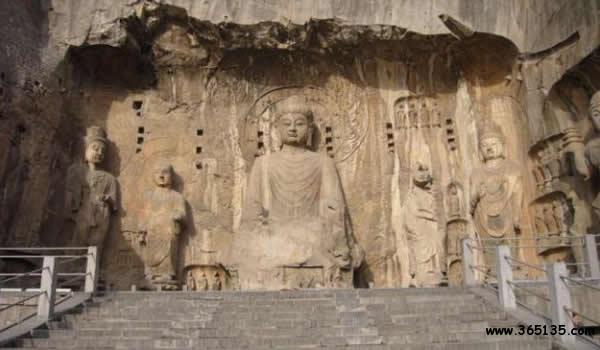 龍門:位于洛陽市洛龍區(qū)龍門鎮(zhèn)伊河兩岸。這里“兩山相對(duì),望而若闕。伊河歷其間北流”(水經(jīng)注)所以古 稱伊闕。伊河兩岸的龍門山和香山,石壁峭立,空缺如門,由于處在隋、唐帝都之南故叫龍門。龍門滿山翠柏,瀑布飛泉,長橋臥空,伊水碧流,尤以龕窟雕飾著稱于世。自古以來,“龍門山色”被譽(yù)為“洛陽八大景”之首。龍門石窟開始營造于北魏孝文帝太和十九年。歷經(jīng)東魏和西魏,北齊和北周,以及隋、唐連續(xù)營造達(dá)四百多年之久。以后,五代、北宋、清均有雕造,但為數(shù)甚少。據(jù)龍門文物保管所統(tǒng)計(jì)兩山現(xiàn)存窟龕二千一百多個(gè),佛塔四十多座,大小造像十萬余尊,其中最大的高17.14米,而最小的僅有2厘米。龍門石窟規(guī)模宏大,分布于伊河兩岸懸崖峭壁之上的潛溪寺、賓陽北洞、賓陽中洞、奉先寺、萬佛洞、蓮花洞、藥方洞、古陽洞、賓陽南洞、大萬伍佛洞、擂鼓臺(tái)三洞、伊闕佛龕之碑、龍門二十品,總計(jì)長達(dá)一千多米,內(nèi)容豐富多彩,雕藝精美而超凡。有史以來,它與敦煌石窟、云岡石窟,并稱為我國三大石刻藝術(shù)寶庫。一九六一年國務(wù)院確定龍門石窟為全國重點(diǎn)文物保護(hù)單位。