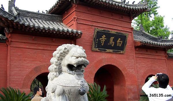 白馬寺:位于洛陽市東郊十二公里處的白馬寺村北側(cè)。始建于東漢明帝永平十一年(公元六十八年),是佛教傳入中國后由封建官府營建的第一痤寺院,距今已有近兩千年歷史。白馬寺名稱之由來,諸說不一,據(jù)《洛京白馬寺祖庭記》碑和《巍書,釋老志》.《洛陽伽蘭記》等記載,漢明帝夜夢(mèng)金人,頂有白光.飛行殿庭。大臣傅轂說;西方有神.名曰佛,“形如階下所焚”。帝派蔡喑、秦景出使酉域拜求佛法,獲佛經(jīng),佛法并拜請(qǐng)攝摩騰、竺法蘭二位佛學(xué)大法師,來到京都洛陽,最初安排在“鴻臚寺”,暫住譯經(jīng)傳教。因譯經(jīng)傳教成績卓著,明帝赦建了中國第一座寺院,即取“鴻臚寺”之“寺”字,又因白馬馱經(jīng)來而取“白馬”冠于“寺”前,稱“白馬寺”。白馬寺從漢明帝創(chuàng)寺至今,在近兩千年的漫長歲月里,曾飽經(jīng)滄桑,數(shù)廢屢興。新中國成立后,黨和人民政府先后于1952年、1954年、1959年、1973年多次拔?顚(duì)該寺進(jìn)行修葺,1961年白馬寺被列為全國重點(diǎn)文物保護(hù)單位,F(xiàn)在白馬寺不但是中外游客游覽場(chǎng)所,而且也是中外佛教信徒瞻仰朝拜的圣地。
