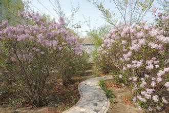 丁香園位于人工湖的北側(cè),占地面積50150平米,園內(nèi)主要收集有小葉丁香、暴馬丁香、歐洲丁香、紅丁香、阿穆?tīng)柖∠、波斯丁香、紫丁香等。在林間大喬木間與園林沿線上,成組、團(tuán)式種植了大片的丁香,少則二、三十株,多則四、五十株,總數(shù)在千株以上。丁香夏季開(kāi)花,花朵纖小而文弱,枝條柔軟,花色淡紫,黃綠或白色,外素而內(nèi)秀,花開(kāi)之時(shí),清香四溢。
