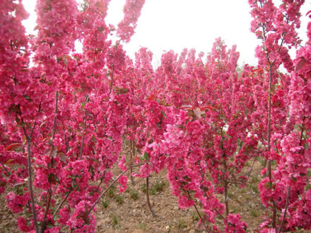 海棠園位于植物園西南角,占地28畝。海棠全世界共有35種,我國(guó)25種,該園收集薔薇科蘋(píng)果屬、木瓜屬的海棠品種27個(gè),14845株。有傳統(tǒng)品種:貼梗海棠、垂絲海棠、西府海棠、木瓜海棠、梨花海棠等,還有引自北美的花果俱佳的絢麗海棠、道格海棠、鉆石海棠、霍巴海棠、紅玉海棠、草莓果凍海棠、王族海棠、粉芽海棠、火焰海棠等。海棠一樹(shù)千花,唐朝《花譜》稱(chēng)海棠為“花中神仙”。每年三、四月間,滿坡的海棠萬(wàn)花齊放,層層疊疊、連綿不斷、紅白相溶、如曉天的明霞。海棠園內(nèi)地形起伏變化,新古洛渠貫穿其中,渠邊種植水生植物,野趣天成,在水流平緩處種植荷花、睡蓮;臨水處栽植垂柳,可謂是“柳占三春色,荷香四座風(fēng)”。