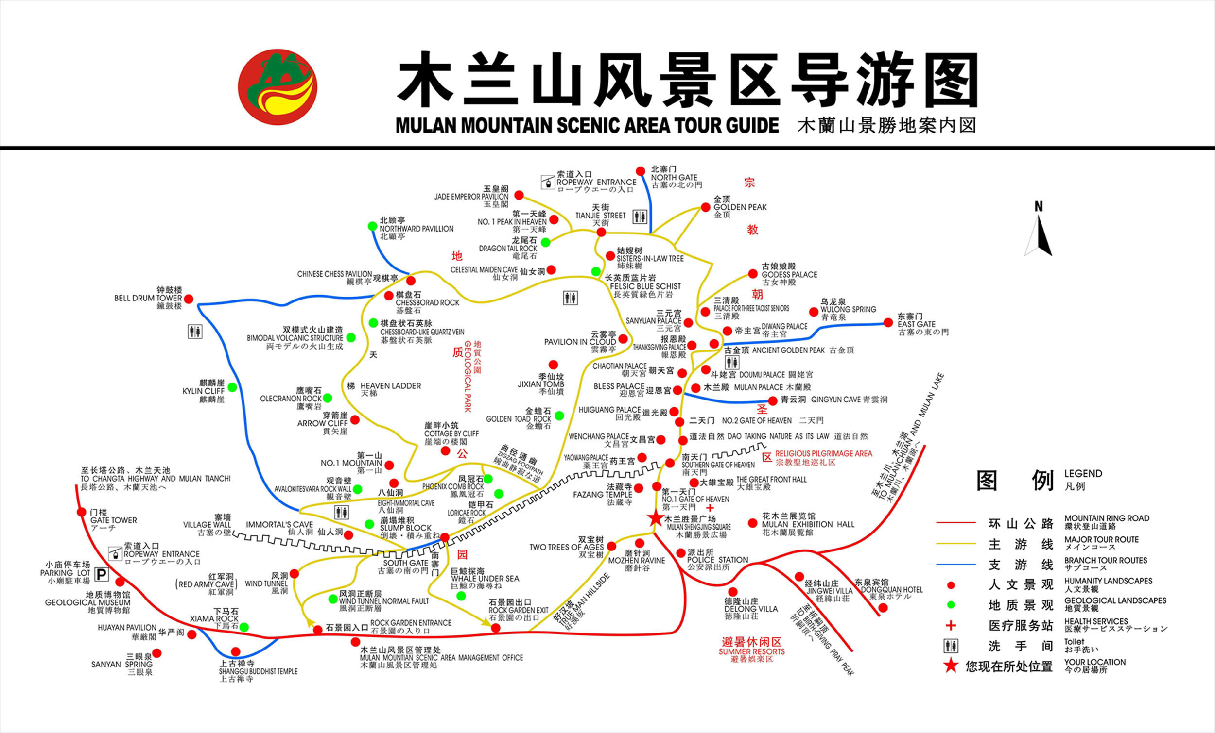 木蘭山景區(qū)是千年香火圣地,其宗教活動(dòng)始于隋唐、盛于明清,佛道兩教共處一山,每年海內(nèi)外香客游人絡(luò)繹不絕。已被列為國家重要景點(diǎn)之一,進(jìn)入全國假日旅游信息預(yù)報(bào)系統(tǒng)。自前向后有南天門、二天門、回光殿、木蘭將軍墳、木蘭殿、斗姥宮、朝天門、報(bào)恩殿、帝王宮、三清殿、娘娘殿、玉皇閣、金頂?shù)染包c(diǎn)。木蘭山作為國家地質(zhì)公園,廣泛分布著有7億5千萬年歷史的藍(lán)片巖。 景區(qū)常年舉辦國際A級(jí)賽事全國山地戶外挑戰(zhàn)賽和木蘭廟會(huì)、木蘭山登山節(jié)。整個(gè)風(fēng)景區(qū)分為古寨區(qū)、石景區(qū)、花苑區(qū)、山莊區(qū)四區(qū)。