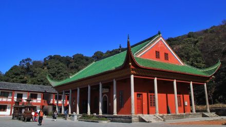 藏經殿在祥光峰下,是南朝陳廢帝光大二年(568年)慧思禪師所建。由于明太祖賜大藏經一部,存放寺中,所以稱為“藏經殿”。以后又相繼改為祥光寺、普光寺,后來仍叫藏經殿,現(xiàn)今的建筑是1933年所重建。