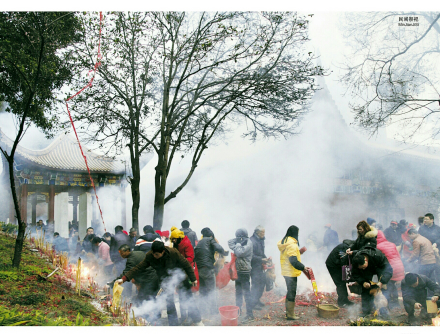 炎帝陵民間祭祀以告祭為主。祭祀時(shí)間多選在每月的初一、十五以及各種節(jié)令、節(jié)慶。此外,每逢炎帝生辰日(農(nóng)歷四月二十六日),炎陵方圓幾百里的群眾都會(huì)匯集于炎帝陵,祭祀炎帝,祈福求平安。民間祭祀儀式有墓前牲祭、上香敬供、跪拜祈福、許愿求應(yīng)、還愿祭拜等等。每年正月,各地民眾爭(zhēng)相在炎帝陵宰殺牲畜,供上果品、美酒,向始祖行三拜九叩之禮,獻(xiàn)香燃炮,傳說這樣就能得到始祖庇佑,一年順順利利,所以每年正月炎帝陵香火尤為旺盛。民間祭祀對(duì)祭時(shí)、禮程亦十分講究,通常拜祭始祖前都會(huì)洗梳干凈,行跪拜叩首之拜之祭過炎帝后,將自己的心愿和所求寫于帛或紙是,用線系于小石子等重物一端,拋掛于炎帝陵內(nèi)的古樹上,祈求炎帝保佑愿望實(shí)現(xiàn)。