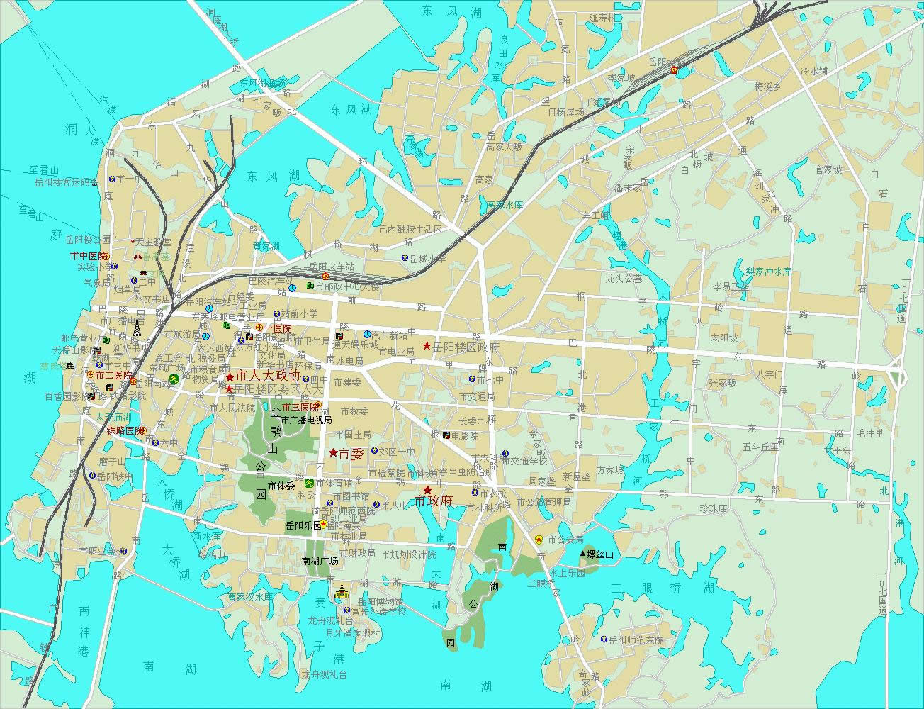 岳陽(yáng)樓街道 轄:郭亮、汴河、九華山、岳陽(yáng)樓、廟前街、剪刀池、楓橋湖7個(gè)社區(qū)居委會(huì)。