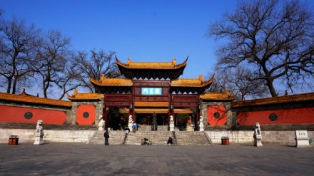 “萬仞宮墻”照壁面臨運瀆,全長近百米。照壁南側(cè)有四個磚刻大字“萬仞宮墻”,每個字約1米見方。仞,是度量單位,我國古代八尺或七尺叫做一仞!叭f仞宮墻”出自《論語·子張篇》:“……夫子之墻高數(shù)(萬)仞,不得其門而入”,意思是贊喻孔子知識淵博,道德文章水平非常之高。