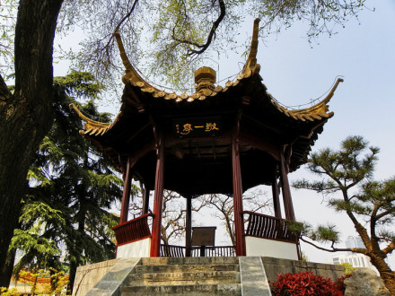 大成殿后是崇圣殿,亦稱先賢祠,歇山頂,檐下斗拱。殿后高處有敬一亭,亭東有飛云閣、飛霞閣等;閣前有御碑亭,碑上刻乾隆六巡江南時為朝天宮景區(qū)所題詩文,故名。敬一亭兩旁疊石堆山,筑水池,布置庭院,這里是治城的最高點。