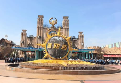 夢幻廣場上,色彩、音樂和諧律動,植被、裝飾色彩明麗。廣場中央,以金屬打造而成的“環(huán)球動漫嬉戲谷”大型球體標(biāo)志金光璀璨,以360度的環(huán)形軌跡勻速運轉(zhuǎn),昭示著永恒延續(xù)的創(chuàng)新精神。正對廣場,“ 英雄門” 雄偉高聳, “ 人” 、“神”、“獸”浮雕形象惟妙惟肖,氣勢威武。在英雄門的左右兩側(cè),分別設(shè)有兩棟輔建筑,右側(cè)為售票大廳及VIP貴賓休息區(qū),左側(cè)為游客出口區(qū),內(nèi)設(shè)置旅游紀(jì)念品及嬉戲谷主題衍生產(chǎn)品購物區(qū)。穿過宏偉的英雄門,心跳里程正式開啟。