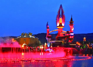 遮掩不住的綠意、隨風(fēng)起舞的樹影、奇思妙想的雕塑。每處景致都在極力烘托各區(qū)域的主題特色。漫步在嬉戲谷,收獲的不僅是自然的靈感、生活的情趣,更有讓人禁不住會心微笑的細(xì)節(jié)和不經(jīng)意間心靈的震撼。最美不勝收的樂園中心的“精靈湖”,湖中挺立著一座精致典雅、風(fēng)格獨特的“神秘之島”,湖島相連,脈脈依依,給人以無盡想象,續(xù)寫著不朽的浪漫傳奇,夜晚。彩色噴泉與夜色相交,體現(xiàn)出與自然景色不一樣的美-------科技美。