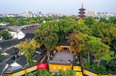 寒山寺位于蘇州市姑蘇區(qū),始建于南朝蕭梁代天監(jiān)年間(公元502~519年),初名“妙利普明塔院”。寒山寺占地面積約1.3萬平方米,建筑面積三千四百余平方米。