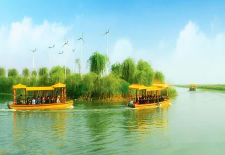 洪澤湖濕地生態(tài)水景苑是集生態(tài)游覽、科普教育、會議休閑為一體的旅游度假景區(qū)。景區(qū)分為濕地生態(tài)植物園、濕地迷宮體驗(yàn)區(qū)、濕地生態(tài)休閑區(qū)、濕地文化體驗(yàn)區(qū)、濕地水上運(yùn)動區(qū)、荷苑等六大板塊,現(xiàn)已建成魚類繁育中心、濕地生態(tài)博物館、垂釣中心、水上運(yùn)動區(qū)、濕地水族館、千荷園、濕地蘆苑區(qū)、精品荷花區(qū)、水上網(wǎng)球場、沙灘排球場等旅游景點(diǎn)和一個集餐飲、住宿、娛樂為一體的金水山莊度假村。景區(qū)水面寬廣,原野廣袤,景區(qū)內(nèi)荷苑飄香,曲橋蜿蜒,蘆蕩深深,百鳥齊鳴。走進(jìn)景區(qū),宛如走進(jìn)一幅原始、自然、生態(tài)的旖旎畫卷。在洪澤湖濕地生態(tài)水景苑,沒有喧囂,沒有污染,有的只是清水綠波、游魚戲逐、荷葦相伴、鳥語花香,早隨鳥鳴起,夜枕蛙聲眠,真可謂是“遺世獨(dú)立”、“羽化登仙”的“人間仙境”。