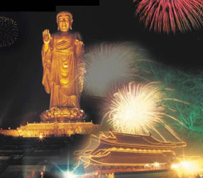 靈山大佛于 1997年11月15日落成開光,海內(nèi)外高僧大德及各地信眾千萬余人親臨現(xiàn)場(chǎng)。是日慈云瑞靄籠罩大佛金身,至開光儀式舉行,祥云飄升,大霧竟奇跡般地散去,預(yù)示法輪常轉(zhuǎn)佛光昔照。