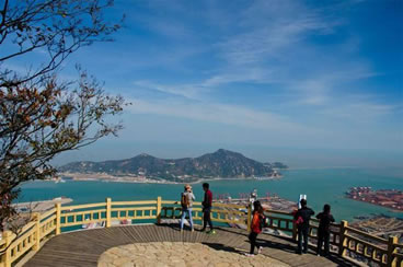 海天一覽觀景臺(tái),建于山崖頂上。依山面海,凌空壯觀,氣勢(shì)恢宏,與懸空棧道、懸索橋、云中漫步廊橋相連,總長(zhǎng)1180米,直通二桅尖山峰。游客在此,極目海州灣,一覽港島城,山海奇觀,盡收眼底,令人心曠神怡,流連忘返。有詩(shī)贊道:“山居有大觀,圖畫入眼簾。曠目千里遠(yuǎn),怡心數(shù)縷煙。島峰浮霧海,帆影接云天。海上長(zhǎng)虹落,銀鷗舞蹁躚”。