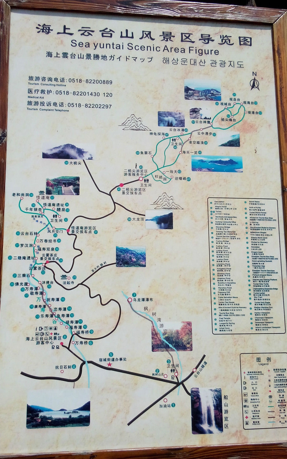 云臺(tái)山古稱郁州山,唐宋時(shí)稱蒼梧山。唐李白詩(shī):“明月不歸沉碧海,白云愁色滿蒼梧!彼翁K軾詩(shī):“郁郁蒼梧海上山,蓬萊方丈有無間”,寫的都是云臺(tái)山。她原來只是黃海中的一列島嶼,18世紀(jì)方與大陸相連。遂形成峻峰深澗,奇巖坦坡,山光水色,獨(dú)具神姿 ,被譽(yù)為:“海內(nèi)四大名靈”之一。明嘉靖年間道教興盛 ,道士云集達(dá)兩萬之眾,山又被譽(yù)為“七十一福地。