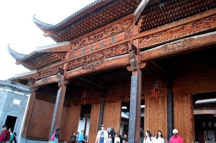 蕭江宗祠 又名永思祠,座落在婺源縣江灣鎮(zhèn)占坑村,距婺源縣城32公里,江灣約2公里。始建于明朝萬歷六年(1587年),后毀于太平天國戰(zhàn)火。1924年(民國十三年)重建,文化大革命期間又被拆毀。蕭江宗祠曾被譽為江南七十座著名宗祠中“最好的一座宗祠”為婺源古代四大古建之首。2003年9月,第三次重建。該祠盡顯王室氣派,占地面積達2400平方米,分前院、前堂、中堂、后堂四進。前院為寬敞花園,設有青石護欄半月形蓮花池,內(nèi)養(yǎng)紅鯉魚、草魚、軍魚等多種魚類;前堂為五鳳樓、九脊頂、午朝門、月樓,梁材檐椽巧飾雕琢、畫面生動、形態(tài)逼真;中堂粗梁大柱,鼓式石礎,石階、石欄、月臺各具特色,匾額楹聯(lián)措詞秀麗、授意深長;后堂高于前堂,有樓閣安放靈牌。