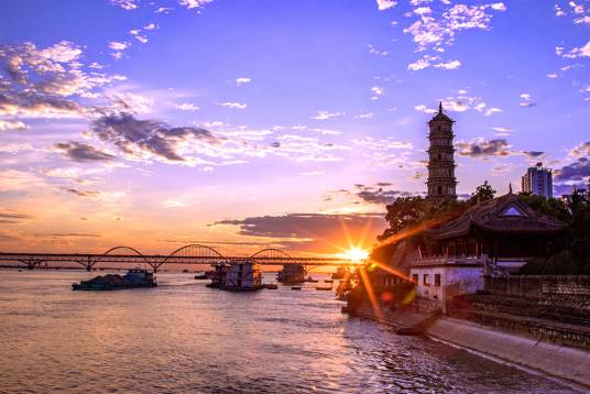 鎖江樓,位于江西省九江市區(qū)東北郊一千米處的長江南岸(九江長江大橋旁)。這里原有一組古建筑,由江天鎖鑰樓(即鎖江樓)、文峰塔(即回龍塔)以及四條鐵牛等許多附設(shè)建筑組成,現(xiàn)僅存鎖江樓塔。