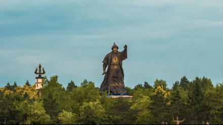 成吉思汗文化園占地面積42萬平方米,依山面水,草木蔥蘢。其中,綠化面積23.9萬平方米,濕地面積9.9萬平方米。有廣場17個、橋梁15座、泰山風(fēng)景石19塊、雕塑九組。園區(qū)內(nèi)主要的景點有泰山石、成吉思汗湖、九曲河、如意廣場、“蘇勒德”、圣山圣祖像等。圣山高16米,占地6萬平方米,動用土方86萬立方米,是松原地區(qū)體積最大的人工山丘。圣山前內(nèi)環(huán)景區(qū)的左右兩側(cè)是高22米、直徑1.9米的青銅雕塑,蒙語稱為“蘇勒德”。圣山上豎立著的便是圣祖像,這座成吉思汗圣像是世界最高的圣祖站立像,主要材料是青銅,高22米,合66尺,重666噸,象征圣主執(zhí)政22年,光輝生命的66歲。成吉思汗左手向前招,右手握大札撒。圣祖像基座上標(biāo)記著被他征服過的歐亞大陸地圖。