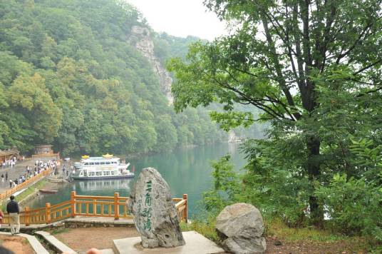 三角龍灣水面面積50公頃,湖中最大水深104米,蓄水量達(dá)1000萬(wàn)立方米。因水面呈三角形,加之湖南側(cè)矗立著30米高的三角石,故名“三角龍灣”。