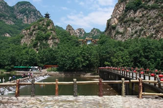 冰峪溝風(fēng)景區(qū)位于莊河市北部山區(qū)仙人洞鎮(zhèn)境內(nèi),距大連市內(nèi)有240公里。景區(qū)規(guī)劃面積約有110平方公里,景區(qū)面積約47平方公里。龍華、攔馬、莢蓉三山屏蔽,英納、小峪兩河盤(pán)繞。這里林木參天,山清水秀,宛如江南風(fēng)景,素有“遼南小桂林”之美稱(chēng)。冰峪溝的風(fēng)景既不同于桂林山水,又不同于黃山云海,以其獨(dú)特的風(fēng)格和韻味呈現(xiàn) 在東北遼南的一隅。