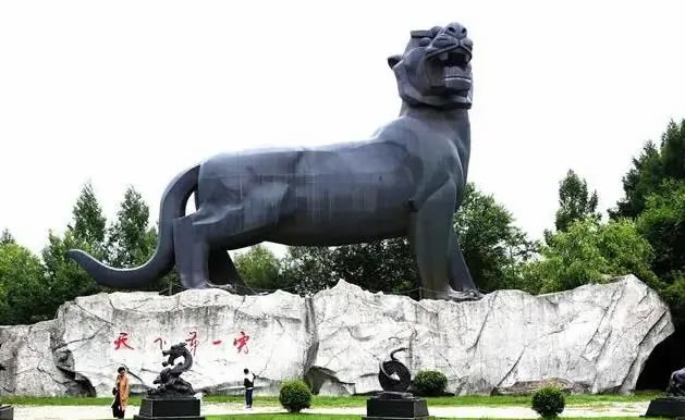 - 虎頭旅游景區(qū)的一大人文景觀和標(biāo)志性建筑,長(zhǎng)25米,高16米,重30.4噸,全部采用銅板鍛制焊接而成。
