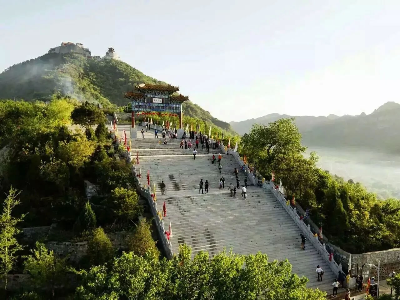 丫髻山旅游風(fēng)景區(qū),位于北京平谷區(qū)平谷縣劉家店鄉(xiāng)境內(nèi),距北京市區(qū)75公里。因丫髻山二峰高出云際,形如髻而得名。該景區(qū)是一處集自然風(fēng)光和宗教(道教)寺院為一體的旅游勝地。丫髻山旅游風(fēng)景區(qū)內(nèi)滿山蒼松翠柏,郁郁蔥蔥。山上的古建筑群依山而建,規(guī)模龐大,包括紫霄宮等景點(diǎn)。相傳丫髻山廟始建于唐初,距今已有1300余年的歷史,歷經(jīng)遼金,盛于元明,清朝康熙、乾隆年間達(dá)到鼎盛。清朝皇帝多次駕幸丫髻山,御封為“金頂”、“畿東泰岱”、“近畿福地”、“靈應(yīng)宮”。