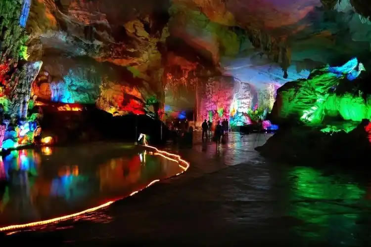 - 特色:燈光映襯下,洞內(nèi)金碧輝煌,宛如海底龍宮。