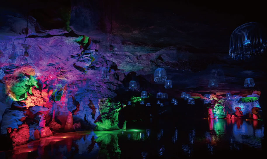 - 溶洞燈光秀。