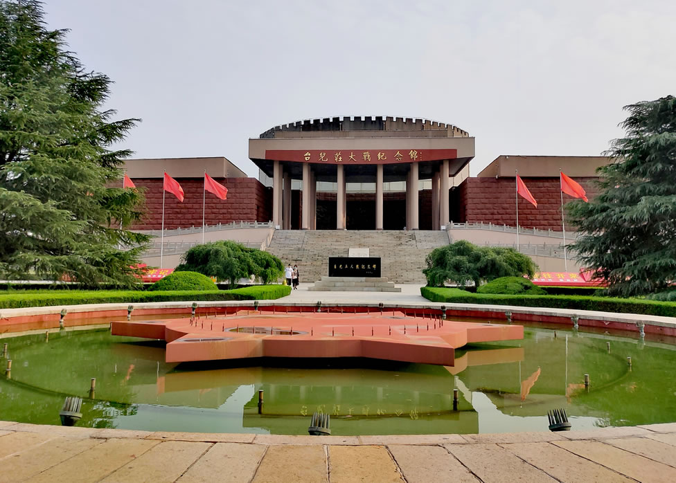 棗臺兒莊大戰(zhàn)紀(jì)念館,位于山東省棗莊市臺兒莊區(qū)城區(qū)西南郊,是為了紀(jì)念抗日戰(zhàn)爭初期著名的臺兒莊戰(zhàn)役而修建,于1992年由臺兒莊區(qū)人民政府籌資建成,1993年4月8日正式對外開放,后經(jīng)擴(kuò)建,占地面積達(dá)96畝,建筑面積1.2萬平方米。臺兒莊大戰(zhàn)紀(jì)念館由紀(jì)念碑、陳列館、影視館、全景畫館、戰(zhàn)地記者館、無名英雄墓、國防教育園等部分組成,并設(shè)有臨時展廳、多功能報告廳和紅色圖書室。展出文物、圖片和史料2000余件,通過歷史文物、歷史圖片、文獻(xiàn)資料與各類輔助陳列手段的有機(jī)結(jié)合,全景再現(xiàn)臺兒莊大戰(zhàn)中愛國將士報效祖國的壯舉。