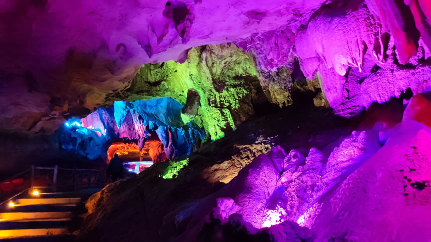 - 景區(qū)核心景點,全長約1600米,洞內鐘乳石千姿百態(tài),色彩斑斕。