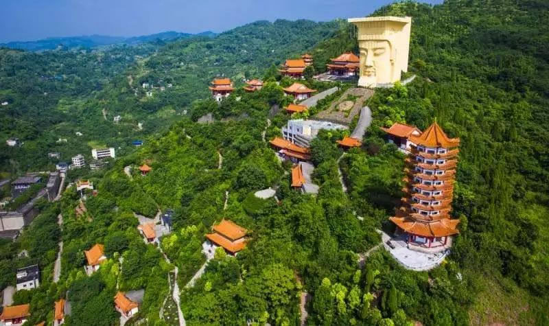 - 特色:與名山、雙桂山呈品字形分布,代表天界,山體約300米處有現(xiàn)代寫意的玉皇大帝雕像,可俯瞰長江三峽奇景。