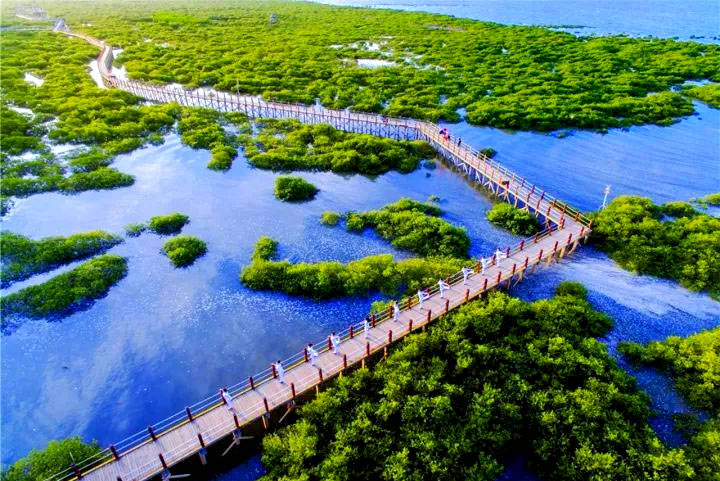 - 紅樹林生態(tài)區(qū):綿延6公里的生態(tài)海岸線,漲潮時(shí)呈現(xiàn)“海上森林”奇觀,退潮時(shí)灘涂可見(jiàn)招潮蟹、彈涂魚等生物,適合觀鳥、攝影。