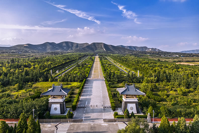 - 地理位置:陜西省渭南市蒲城縣西北豐山,唐睿宗李旦陵墓,全國重點文物保護(hù)單位、國家AAAA級景區(qū),以“石雕藝術(shù)寶庫”著稱,面積852萬平方米,神道寬110米、長625米,石刻群包括華表、翼馬、鴕鳥、翁仲等,氣勢恢宏。