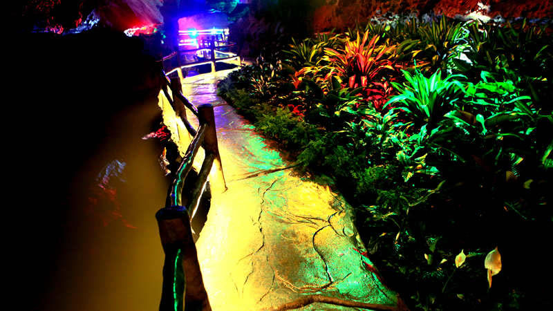 進(jìn)口→龍骨洞→天國(guó)睡佛→時(shí)空隧道→別有洞天→滄海日出→水漫金山→千載難逢→金雕獨(dú)尊→出口。