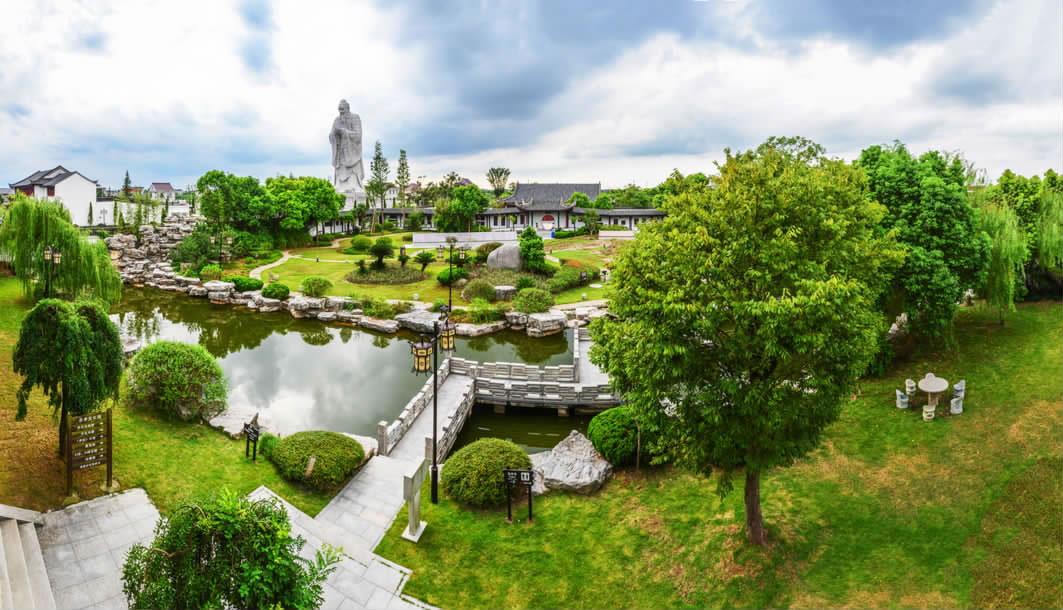 忠孝文化園位于江蘇省南通市通州區(qū)東社鎮(zhèn)鎮(zhèn)區(qū)北側(cè)500米,占地面積160畝,總投資3.2億元,分四期工程建設(shè),由同濟(jì)大學(xué)設(shè)計(jì)為具有明末清初風(fēng)格的江南園林式建筑。該園以陸鳳彬?qū)④娮嬲瑸榛A(chǔ)建造,2008年11月竣工開園,是國(guó)內(nèi)首個(gè)以"忠孝"為主題的人文景觀。園區(qū)主體建筑包含思苑樓、忠孝坊、中華柱、忠孝文化長(zhǎng)廊及六角忠孝亭,陳列24忠24孝故事石刻、《孝經(jīng)》石刻長(zhǎng)卷和唐至近現(xiàn)代硯臺(tái)50余方。園內(nèi)矗立國(guó)內(nèi)最高孔子石雕像,通高32米,由480余塊石質(zhì)部件拼接而成,重約千噸,以唐代吳道子畫像為藍(lán)本雕刻。聚寶閣收藏四大偉人紅木雕像、百名將軍墨寶及趙樸初等書法家作品。該園免費(fèi)對(duì)外開放,設(shè)有愛國(guó)主義教育展廳、國(guó)防教育展區(qū)及多功能影視廳,年均舉辦道德講堂、主題展演等教育活動(dòng)百余場(chǎng)。配套服務(wù)設(shè)施包含水上餐廳、垂釣中心及可容納300人的宴會(huì)廳。