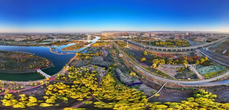 伊利現代智慧健康谷依托大青山、大小黑河等自然景觀,充分利用區(qū)域內部農田、草原、敕勒川生態(tài)智慧牧場等當地景觀特色,構建“綠錦環(huán)城、通山連水”的生態(tài)涵養(yǎng)系統(tǒng),銜接伊利智造體驗中心引導、宣傳、集散、游憩、服務五大功能,融入智能科技、人文關懷主題,打造了人與自然融合共生的智慧典范,創(chuàng)設了產在城中、城在綠中的宜產宜居的產城融合新模式。