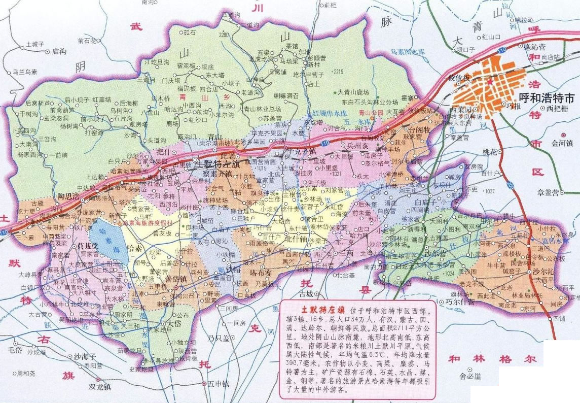 土默特左旗位于呼和浩特市西部,大青山南麓富饒的土默川平原上,東臨呼和浩特市城區(qū),北倚大青山與武川縣接壤,南連和林格爾縣、托克托縣,西接包頭市土默特右旗。