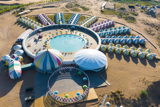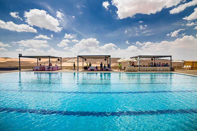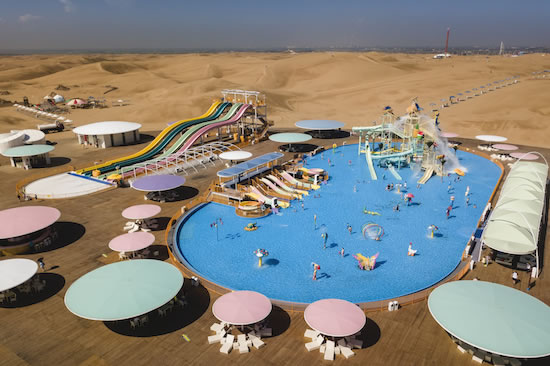 在沙漠中各種深淺的大型泳池里,以各種泳姿釋放自己——在沙丘起伏無際的沙漠里——在沙漠中屬于自己的水的世界里……累了,就躺在清爽的沙灘床上,美美地過上幾個(gè)小時(shí),同時(shí)可以與同行的人邊吃邊喝邊聊哦,別睡著了,演出一定會(huì)有的,悅沙島每天會(huì)有十多場(chǎng)不同的演出或比賽,是藝術(shù)的、是體育的……
