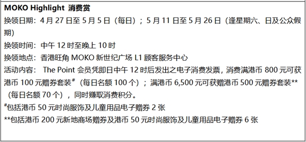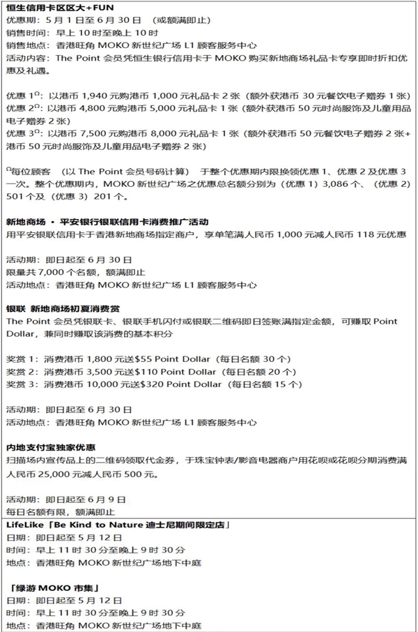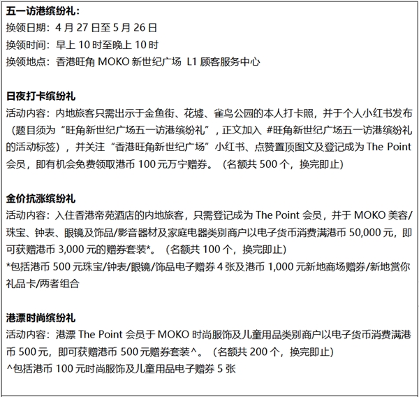 有關(guān)香港旺角MOKO新世紀(jì)廣場(chǎng)五一推廣活動(dòng)詳情