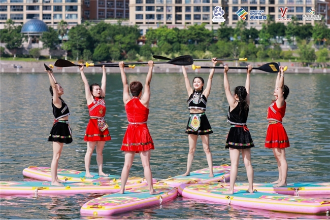 前屈、后彎、扭轉(zhuǎn)、平衡、倒置……音樂與動作和諧統(tǒng)一,身體與槳板融為一體。參賽隊(duì)員們展示的不僅是控制身體的力量,更是人與自然、美與健康的完美結(jié)合,圍觀群眾不時給予陣陣掌聲。
