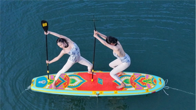 當(dāng)古老的瑜伽遇上時尚的槳板,當(dāng)柔美的倒影撫摸太鶴湖鱗鱗的水面,太鶴湖上便盛開了一朵朵絢麗的花朵。一片湖面便有一塊槳板,一塊槳板便是一片風(fēng)景!槳板瑜伽展示的不僅是時尚之美,更是健康之美!