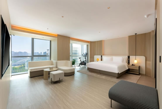 酒店所有的客房均配有健身器材及榮獲紅點設(shè)計大獎的香薰睡眠燈,同時配備的華為客控系統(tǒng)全方位提升智能化服務(wù)體驗,也是華為客控系統(tǒng)應用到酒店行業(yè)的全球首次嘗試。整個客房輕松自然的設(shè)計、親膚舒適的寢具及多感官的助眠體驗,從視覺、聽覺等多方面為你營造一個良好的舒睡環(huán)境,緩解旅途壓力。