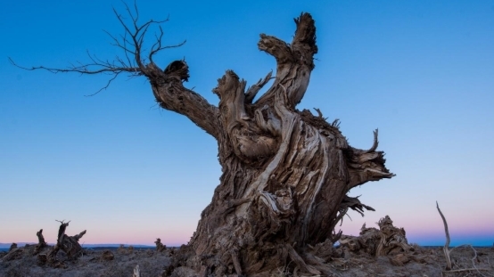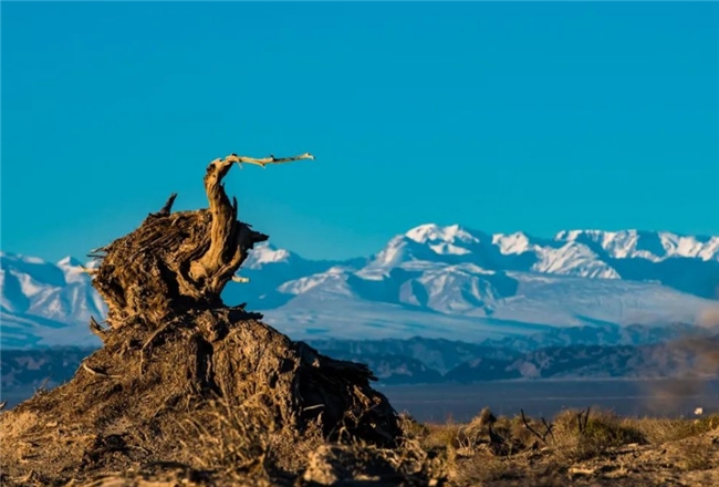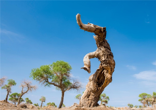 九千年胡楊,這里胡楊樹形也同樣奇特,有的胡楊猶如一頭大象,象鼻朝下吸水,象背馱著元寶自遠(yuǎn)處而來,為游客帶來吉祥和財富;有的胡楊春萌新芽,夏葉婆娑,秋金滿地,冬蘊傲骨;有的胡楊就像古代的帝王莊嚴(yán)的祭祀著天地的生靈,祈求一方祥和,護佑一方安寧。