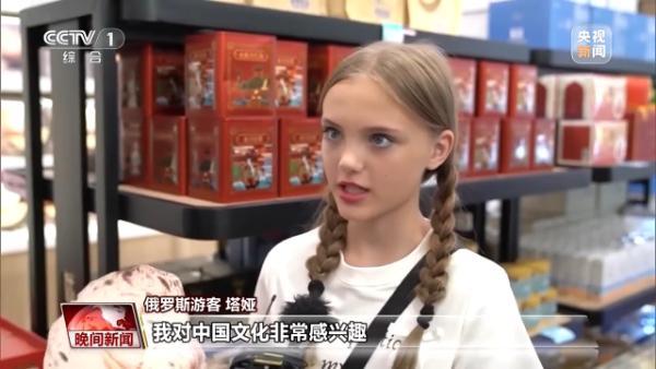 俄羅斯游客塔婭:我對中國文化非常感興趣,中國的文字、服飾、習(xí)俗都很有意思。(來源:央視新聞)