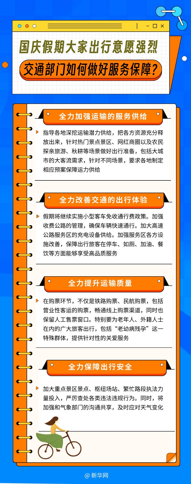 “十一”假期明天就將開啟。交通運(yùn)輸部預(yù)測,假期全社會跨區(qū)域人員流動量將達(dá)到19.4億人次,平均每天2.77億人次。強(qiáng)烈的出行意愿傳遞出流動的中國活力。假期出行將會呈現(xiàn)出哪些顯著特點、主要的熱門目的地有哪些、交通部門如何做好服務(wù)和安全保障工作?
