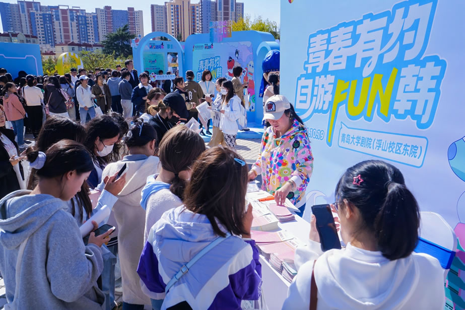 為促進(jìn)大學(xué)生對(duì)韓國(guó)文化的喜愛(ài)和了解,吸引更多的年輕人訪問(wèn)韓國(guó),韓國(guó)旅游發(fā)展局于10.19日在青島大學(xué)舉辦“山東省大學(xué)生韓流慶典”,本次慶典分為“第十五屆山東省大學(xué)生k-pop大賽”和“青春有約,自游FUN韓”文化體驗(yàn)兩個(gè)部分,共吸引山東省內(nèi)20所大學(xué)學(xué)生參與。