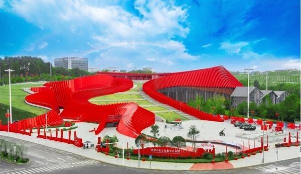 貴州長征文化數(shù)字藝術(shù)館(紅飄帶)建筑外觀,該建筑以“地球的紅飄帶”為主題,外觀設(shè)計(jì)參考“中央紅軍長征路線圖”。