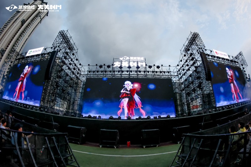 夜幕初降,利川市清源體育廣場(chǎng)已化作人潮涌動(dòng)的海洋。當(dāng)全場(chǎng)齊聲倒數(shù)“5!4!3!2!1!”時(shí),整個(gè)場(chǎng)館瞬間被光影點(diǎn)亮,配合動(dòng)感鼓點(diǎn)形成震撼視覺沖擊。由訊飛音樂(lè)AI虛擬歌手Luya帶來(lái)的《黑白幻夢(mèng)》舞臺(tái)拉開整場(chǎng)演出的序幕。
