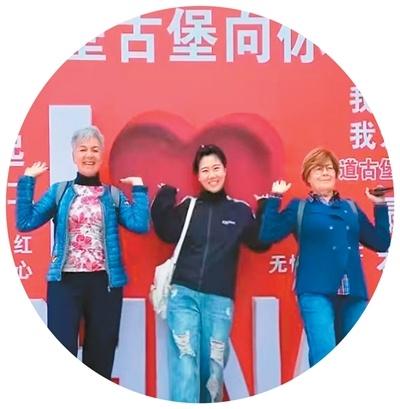 劉麗玲(中)與外國游客在張壁古堡合影。受訪者供圖