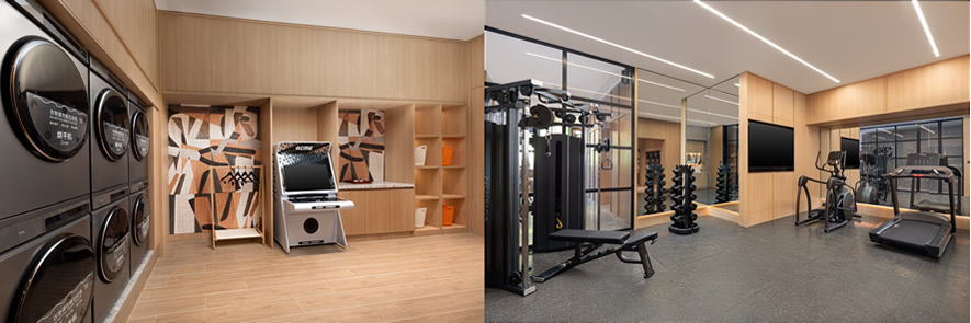 暢享“智慧”家居也是Atwell筑格酒店的重要特色之一。酒店配備全屋智能操控系統(tǒng),支持語音控制與一鍵客服,賓客可輕松調(diào)節(jié)溫度與燈光,使用智能家電,并配備隨心調(diào)節(jié)高低的升降桌以滿足不同場(chǎng)景需求。浴室設(shè)有熱毛巾架,電視支持智能投屏,賓客可獲得更順暢的居停體驗(yàn)。酒店還設(shè)有“洗躍”健身洗衣空間,配有座位、游戲機(jī)等設(shè)施,打造具備洗衣和健身功能的社交休閑區(qū),讓入住體驗(yàn)更加豐富自在。