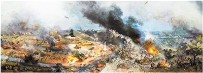 臺(tái)兒莊大戰(zhàn)紀(jì)念館全景畫館一景。